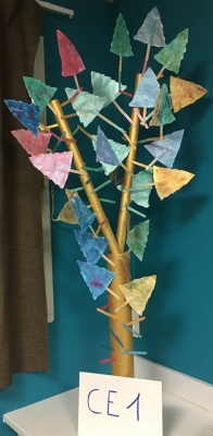 Cette fois-ci, les élèves ont dû résoudre un problème : comment réaliser et décorer un sapin SANS utiliser de vrai sapin ? Voici leurs propositions, qui ne manquent pas d’originalité ! (C’est le sapin des GS-CP qui a remporté les suffrages).