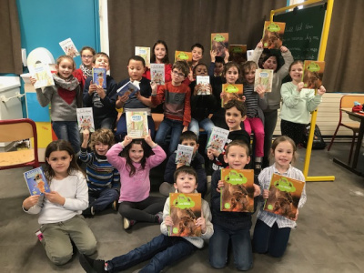 Lorsqu’ils sont retournés dans leur classe, un paquet attendait chaque élève : un livre ! (offert par l’Association des Parents d’Elèves).